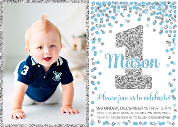 1st Birthday Invitation for Boy 1st Birthday Photo Invitation Blue