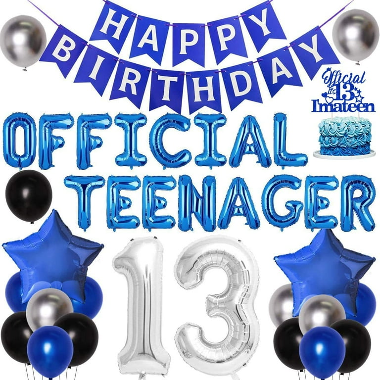 Navy Blue Silver 13th Birthday Decorations for Boys Girls Official