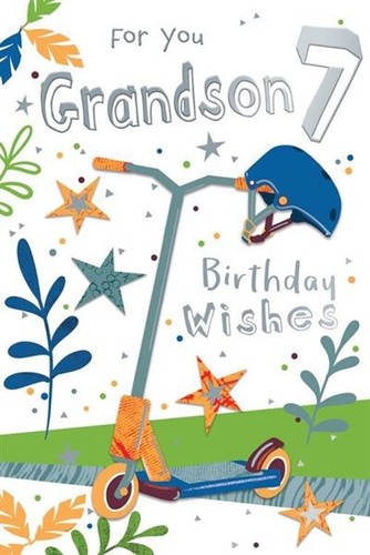 Happy 7th Birthday Grandson Greetings Card Luxury Foil With Verse